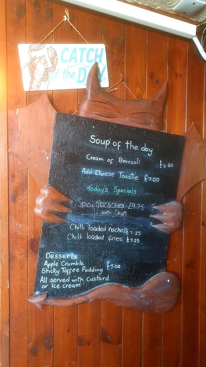 Expect simple but satisfying dishes such as freshly prepared fish and chips, hearty burgers, and seafood rolls like the crab baguette or fish finger roll—all designed to be enjoyed alongside a pint or a crisp glass of cider. The menu leans into local ingredients and familiar flavors, creating a welcoming spot to unwind after a day by the sea or during a lively get-together with friends.